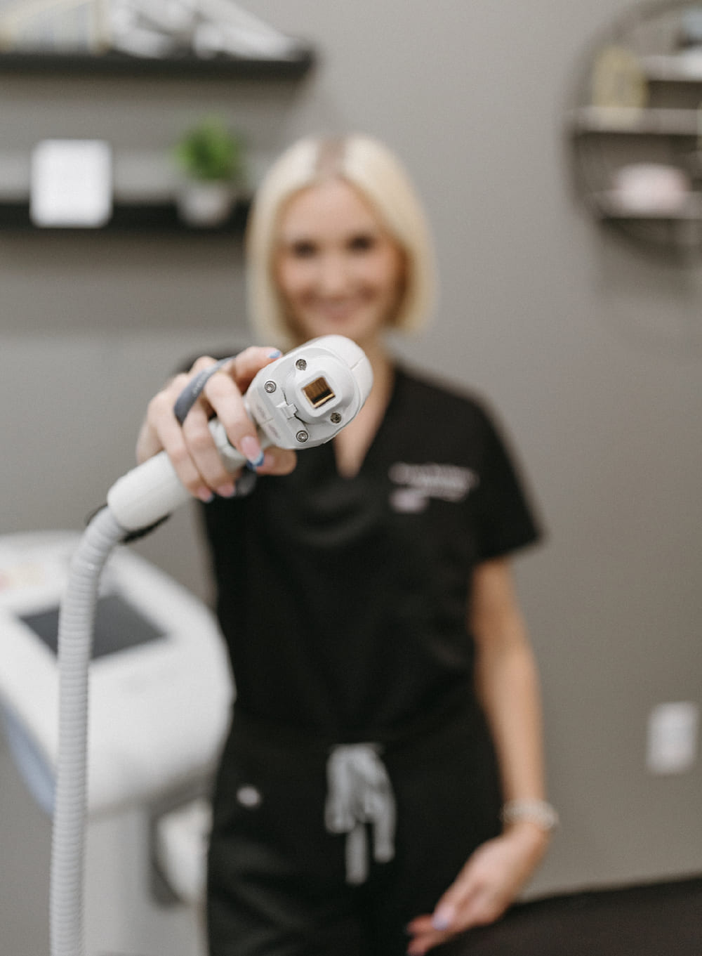 During an IPL photofacial, a laser wand delivers short and precise amounts of pulsed light energy to targeted areas of skin. The light penetrates your skin and destroys the pigment-producing cells below the surface to safely achieve a more even skin tone and texture.